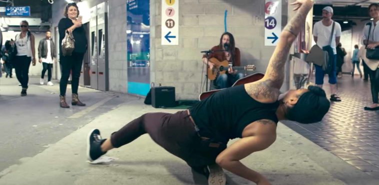 Quand des danseurs mettent en valeur les artistes du métro. Un joli moment de poésie.